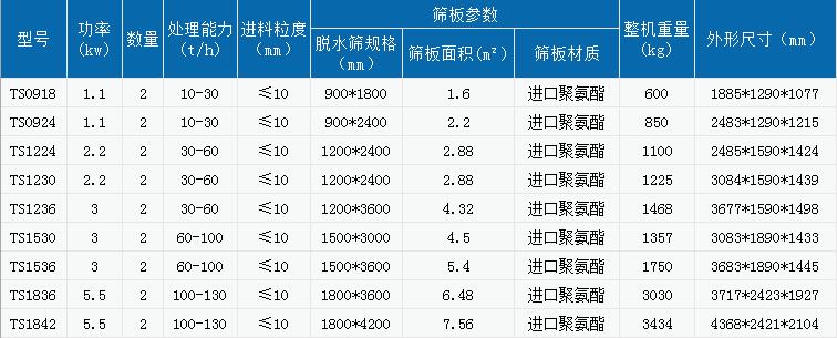 脫水篩用于中細粒物料的脫水、脫介也可用于中細粒煤的干式、濕式分級脫泥。脫水篩也可用于堆比重<1.3的其它物料的脫泥、脫水和分級。脫水篩用于選煤、選礦、等部門中、細粒度干式、濕式篩分、脫水、脫介、脫泥,結構合理、堅固耐用、噪音小、維修方便。